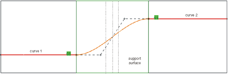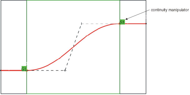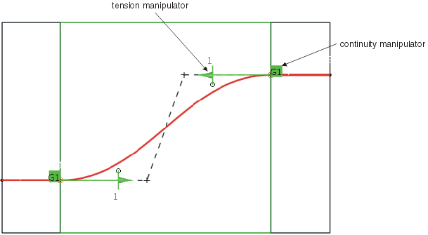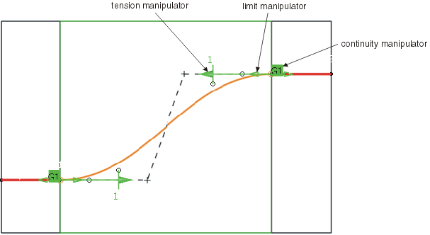 The created blend curve can subsequently be modified by manipulators for editing continuity, tension, and limit.