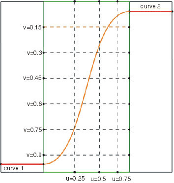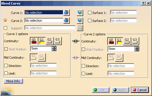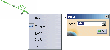 - Tangential, Radial, Iso U, Iso V : The reference direction at start and end of the blend curve is set.