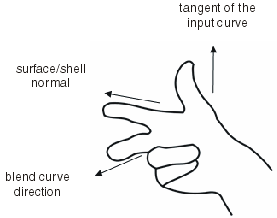 Note: The desired direction of the blend curve is determined by the right-hand rule: