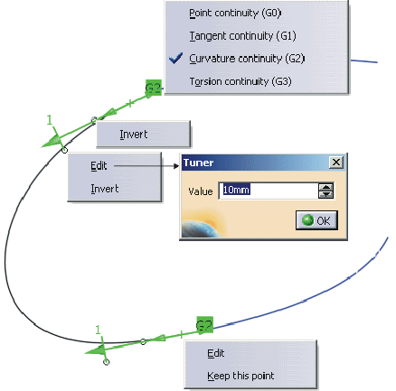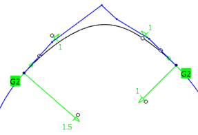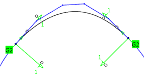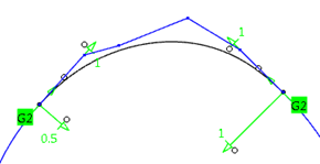 Ratio handles are displayed on the curves if the continuity is at least G2.