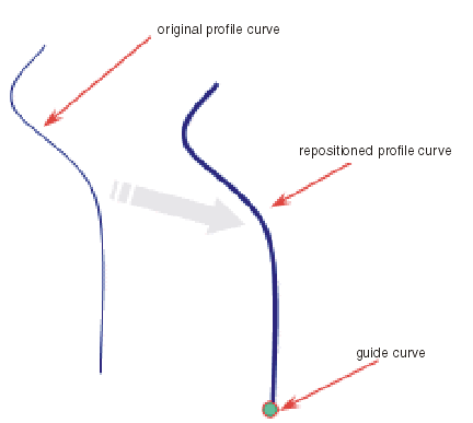 A profile is repositioned along the guide curve according to the point selected on the profile.