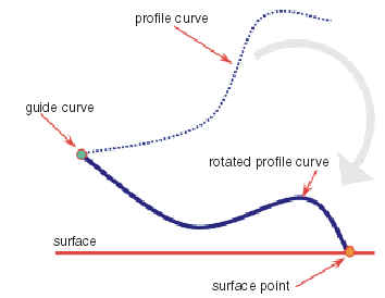 A profile is rotated around the guide curve until the first tangent point on the profile comes into contact