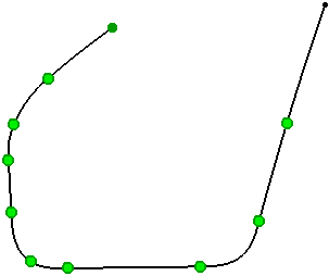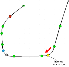 At the input curve boundaries are displayed green manipulators.