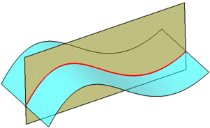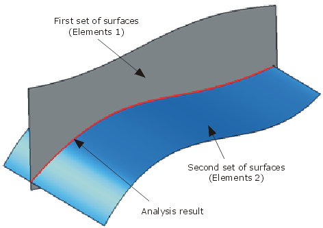 The analysis calculates the intersection line of two sets of surface elements. The result is a Feature.