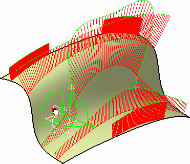Once the local plane is defined, inflection lines are automatically displayed on the surface. |