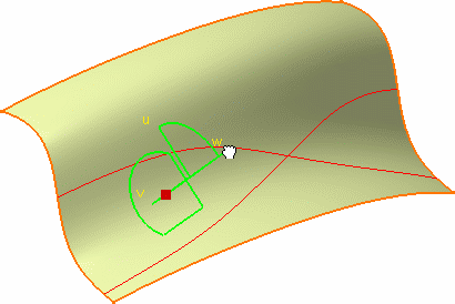 | This task shows how to create inflection lines on a surface for analysis purposes. Inflection lines are curves which curvature value necessarily is 0. The system detects, within the planes parallel to the one defined by the compass, all points of the surface at which the curvature value is null, meaning that in these points, the curvature orientation is changing, and links them together into curves. |