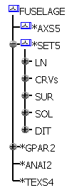 Note that if you select a Ditto (DIT) in the Specification Tree, you select all the components within the Ditto. For instance, if you hide a Ditto by transferring it to the No Show space, all the objects under Ditto will no longer be displayed in the Geometry area. | |||