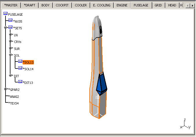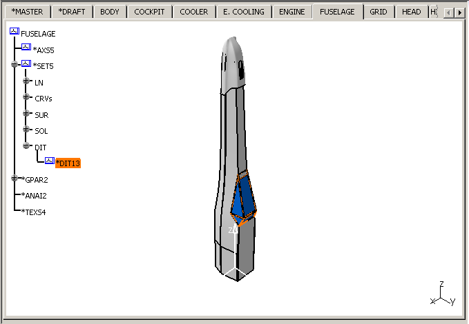 This task shows you how to display a CATIA Version 4 model workspace and select its geometric elements in CATIA Version 5. | |||