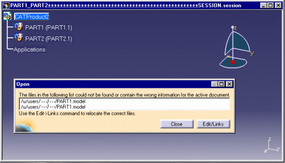 If the links on the models are unresolved, the following dialog box