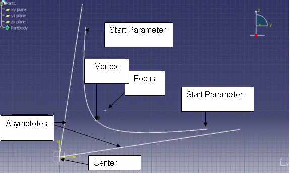Hyperbola as a CATIA Version 4 Hyperbola. A V4