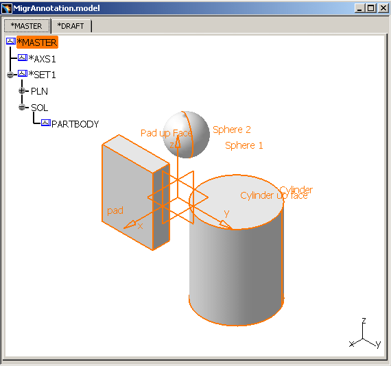 MigrAnnotation.CATPart. This CATPart contains 3D Text and arrows: