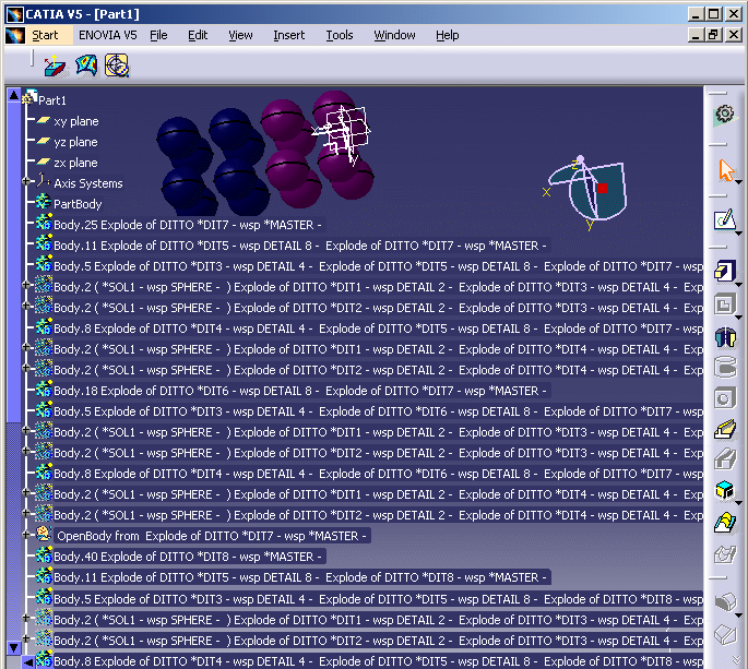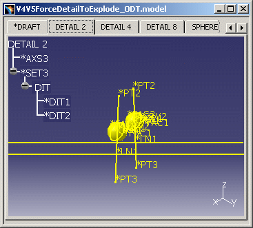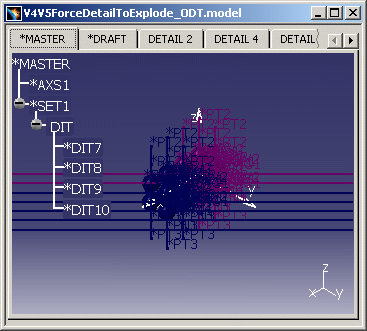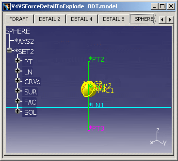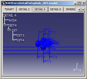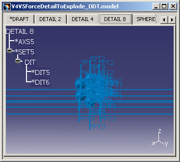 This task shows you how the Details and Dittos can be migrated into CATIA V5 without link. All the V4 workspaces are put together within the same CATPart and the Detail no longer exists (no link). | |||||