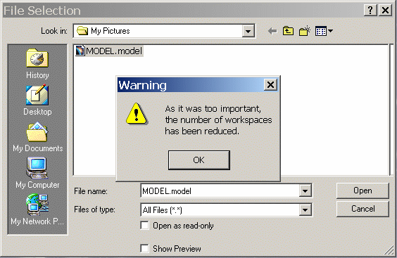 The default value will be fixed to 50 tab pages. In case of limitation, a Warning will appear, indicating that the number of workspaces has been reduced:
