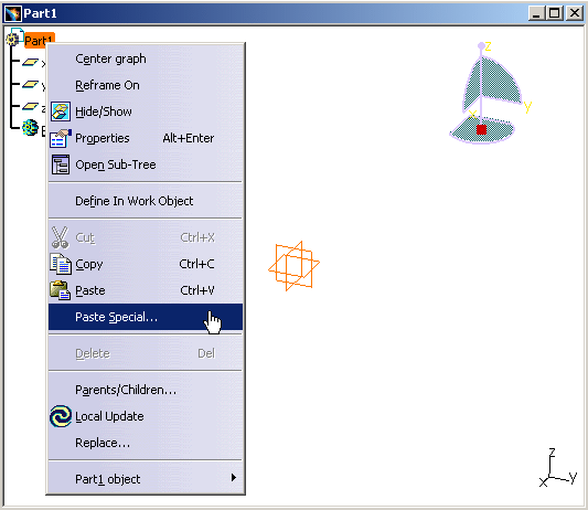 Select the Part1 from the specification tree and choose