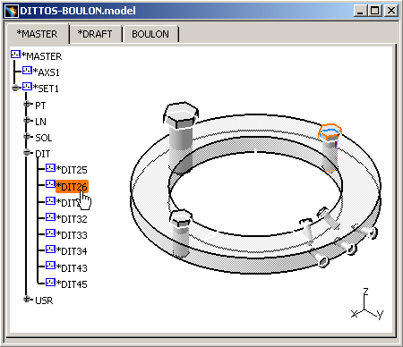 in CATIA V5. This model contains a Detail and several Dittos.