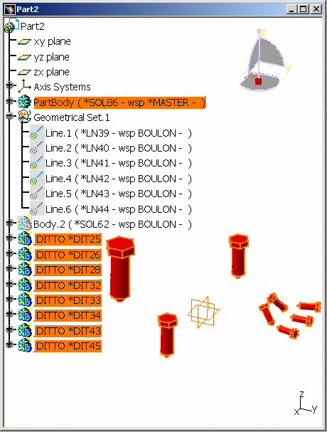 copying it in CATIA V5: Click *MASTER and the Geometry Check icon