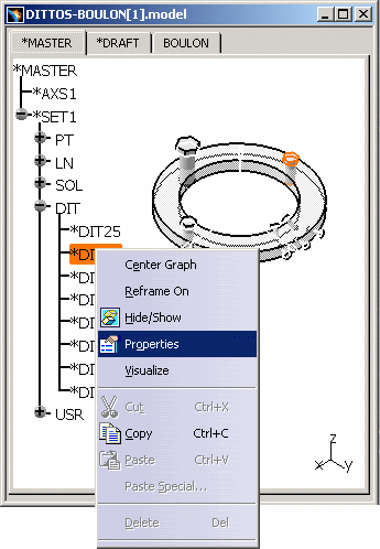 SPEC on the Boulon on the Boulon tab before copying it in CATIA V5. The following
