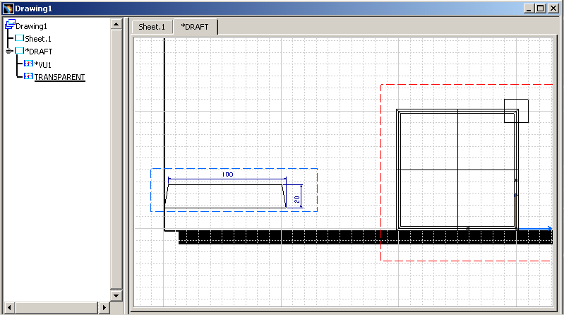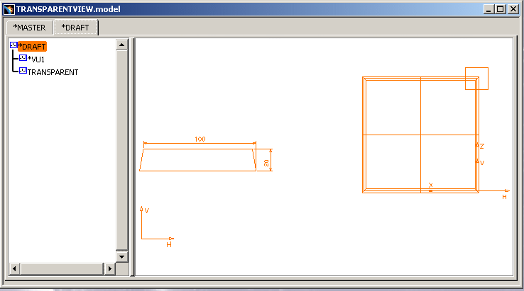 Press the *DRAFT tab to visualize the Drawing view: |