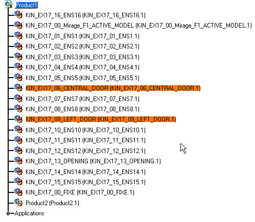 In the specification tree, click KIN_EX17_06_CENTRAL_DOOR