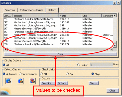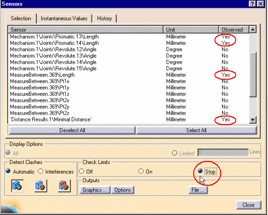 interest that appear in the Sensors list (Selectiontab from the