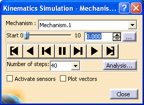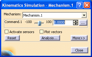in the DMU Kinematics toolbar. The Kinematics Simulation -