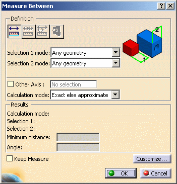 Select the measure item: the Measure Between dialog box