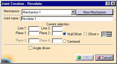 Joint > Revolute from the Menu bar. The Joint Creation: