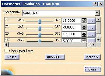 This task shows you how to take advantage of the clash detection functionality in a kinematics simulation context. | |||||||