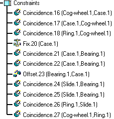 Open the jigsaw_with_constraints.CATProduct document. The constraints are visible both in the geometry area and in the specification tree. |