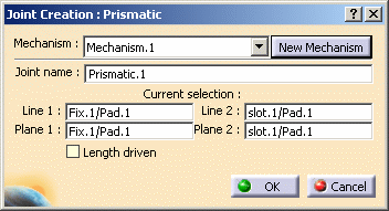 This task shows you how to create prismatic joints in a V5 mechanism. |