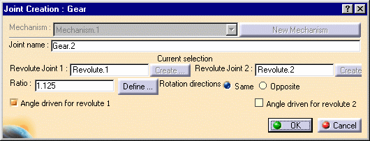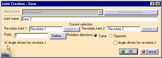 | Now select two Revolute joints to create the gear