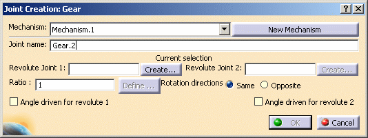 Joint > Gear... from the Menu bar. The Joint Creation: Gear