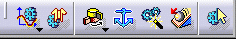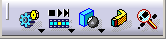and sub-toolbars available in DMU Kinematics Simulator workbench. The toolbars are located on the right in the default set-up except for Measure toolbar which is located along the bottom and User Selection Filter toolbar which appears when selected in the View > Toolbars menu bar. |