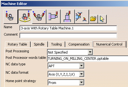 Click the Machine icon then select the 3-axis with Rotary Table Machine type in the Machine Editor.