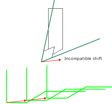 The shift direction must be inside the limit angles defined on the tool insert otherwise a collision may occur. In collision cases, the collision is on the first pass, not on the last passes of the tool path.