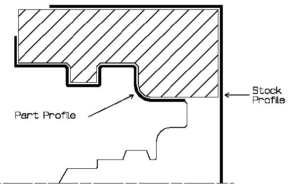 For example, in the following figure the area to machine is relimited by the spindle axis because the stock profile is also relimited by the spindle axis.