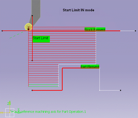 The Stock Extension distance allows you to extend the stock in the machining direction and, to any desired length. This can be useful in Rough turning scenarios, where you want to machine beyond the stock profile. This extension is taken into account for tool path computation when an End Limit element is defined and used on the operation (when End Limit mode is different from None).