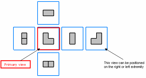 view type. The name of a primary view corresponds to its view type. For example, a primary view of the left type is named "Left view". The specification tree does not distinguish primary views from other views. (To know which view is the primary one, you may use knowledge capabilities). Layout sheets may have several primary views of different types. A view box is associated to each new primary view. Thus, design views created from primary views are created according to their associated view boxes and not from the standard's definition, which keeps the position of linked views in 3D space coherent. Section Cut / Section ViewIn the 2D Layout for 3D Design workbench, when activating the Cutting Plane icon, representations of section cuts and section views are identical (for the background of a section cut is still visible). However, it is useful to differentiate these two view types from their 3D creation, because once projected in the Generative Drafting workbench, section cuts and section views are represented correctly. To distinguish a section cut from a section view in a layout, you can customize the visualization. Activate the back-clipping plane, then edit a low depth. The background of the section cut will be less visible.