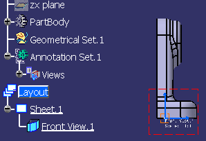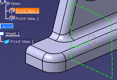 activated (you will then create an associative view). In the 3D window, select Front View.1 from the specification tree.