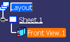 Click OK. In the specification tree, a red lightning on the Front View.1 icon indicates the view is no more associative.