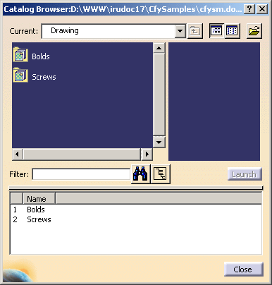 Performing this task assumes that you have already created a component catalog using the Interactive Drafting workbench. For more information, refer to Creating a Component Catalog in the Interactive Drafting User's Guide. To enable you to perform this scenario, a component catalog sample is provided. | ||||||