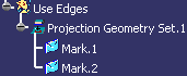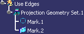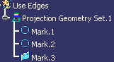 Note: While creating a use-edge using the Project 3D Elements command, you can select a sketch or a face of 3D part and directly create one or many marks instead of selecting edge by edge. |