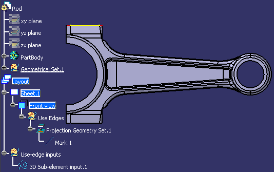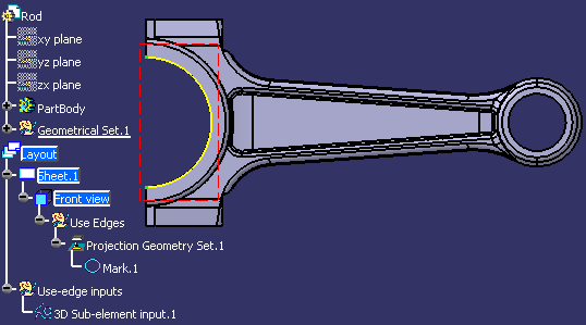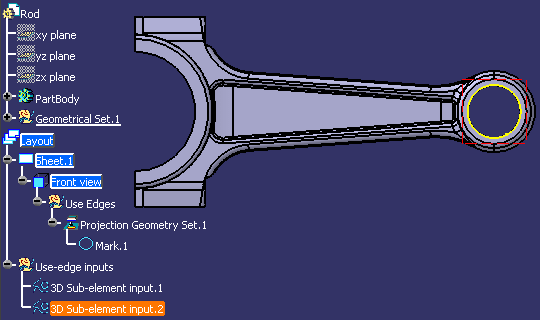Geometrical inputs of a use-edge can be located in the same CATPart as the 2D Layout CATPart, or in an external document. The following