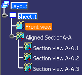 Open the Disk3.CATPart document. Double-click Sheet.1 in the specification tree to open the layout in the 2D window. | |||||||||||||||||