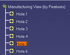 Select a feature in the View (Hole5, for example).