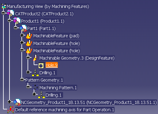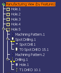 feature selection. If you edit the Machining Pattern.1 (to include more points, for example) both the Spot Drilling and Drilling operations will be updated. |