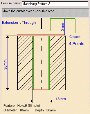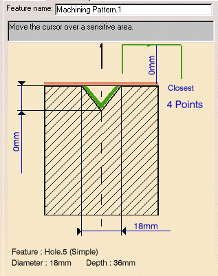 Selecting the hole shown below the machining feature and