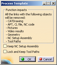 | 3. | If needed, select the check boxes concerning NC Setup Assembly and Tool Paths then click OK to 'clean' the process. | |