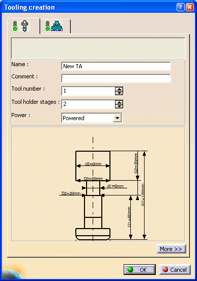 sub-toolbar). The Tooling Creation dialog box appears for defining the tooling. |