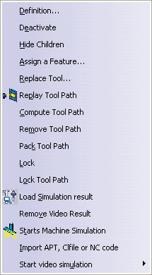 | Load Simulation Result | Opens the Video Result CATProduct in a Video window for analysis of the machined stock, collision results, and so on. Only available if a Video Result CATProduct is associated to the opreation. | |